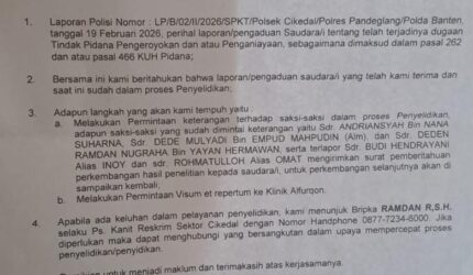 Kasus Dugaan Pengeroyokan Masuk Tahap Penyelidikan, Polsek Cikedal Kirim SP2HP ke Pelapor