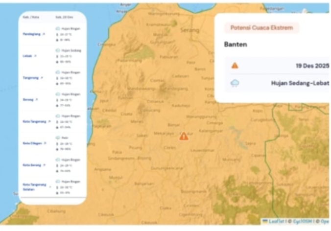 Suarapanturanews.com — Polda Banten kembali mengimbau masyarakat untuk meningkatkan kewaspadaan terhadap potensi cuaca ekstrem berdasarkan pembaruan informasi dari Badan Meteorologi, Klimatologi, dan Geofisika (BMKG) Banten per Sabtu, 20 Desember 2025.