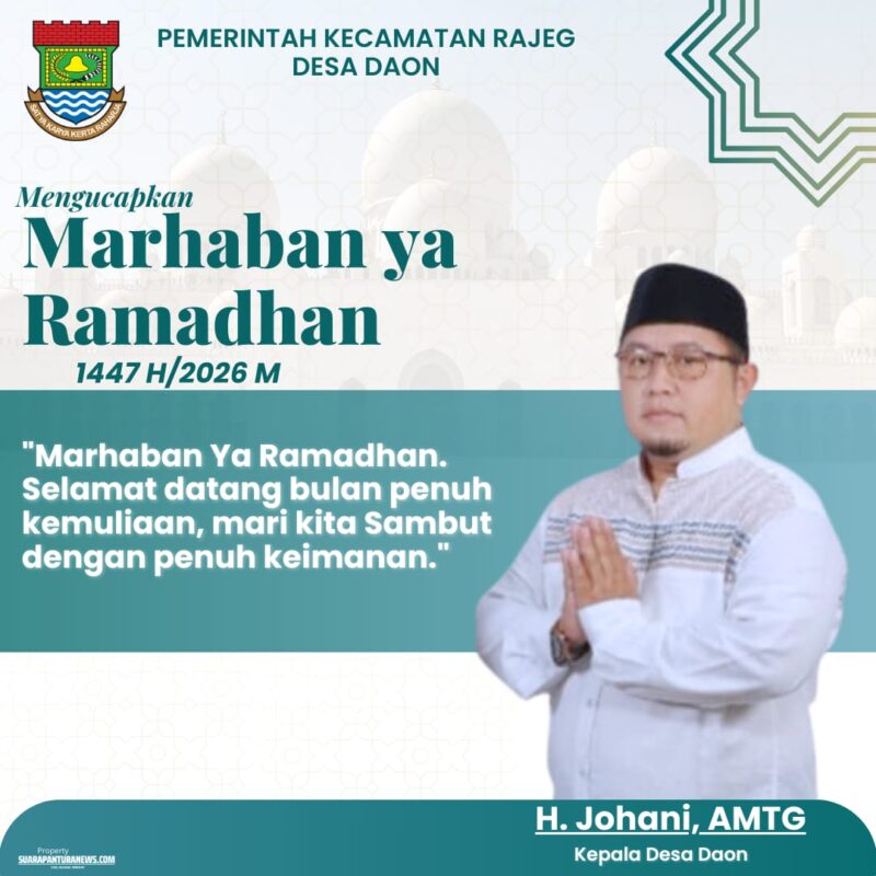 Suarapanturanews.com — Tangerang, Pemerintah Desa Daon Kecamatan Rajeg, Kabupaten Tangerang, mengucapkan selamat menyambut bulan Suci Ramadhan 1447 Hijriyah.