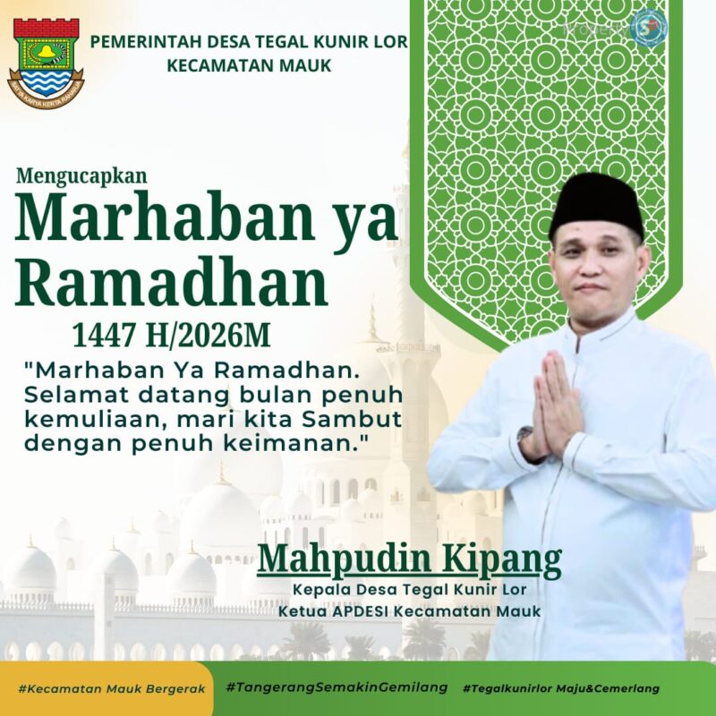 Di katakan Kepala Desa Tegal Kunir Lor Kecamatan Mauk, Mahpudin Kipang, Beserta Jajaran Pemerintahan mengucapkan Selamat Menyambut Bulan Suci Ramadhan kepada seluruh umat muslim, Sabtu (14/2/2026).