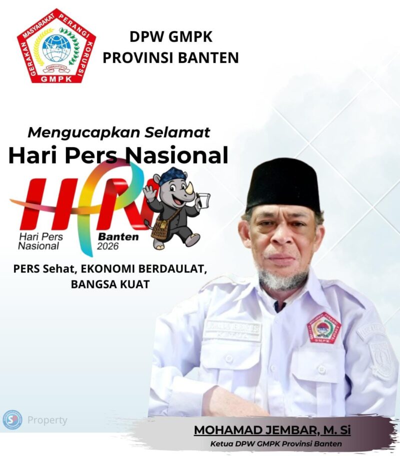 Suarapanturanews.com — DPW GMPK Provinsi Banten mengucapkan selamat Hari Pers Nasional (HPN) tahun 2026. Peringatan ini menjadi momentum penting bagi seluruh insan pers di Indonesia.