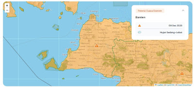 Lebih lanjut, Meryadi menyampaikan bahwa memasuki siang hari potensi hujan ringan meluas ke wilayah Cibeber, Sobang, Lebakgedong, Pagelaran, Labuan, Menes, Saketi, Pandeglang, Cadasari, Patia, Carita, hingga sebagian besar wilayah Serang serta Tangerang Selatan seperti Ciledug, Larangan, Ciputat, dan Pamulang.