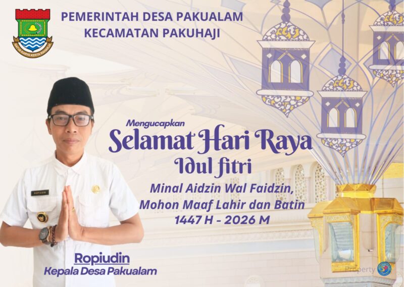 “Atas nama Pemerintah Desa Pakualam Kecamatan Pakuhaji, kami mengucapkan Selamat Hari Raya Idul Fitri 1 Syawal 1447 Hijriah. Minal Aidin Wal Faizin, mohon maaf lahir dan batin. Semoga di hari yang fitri kita semua kembali kepada kesucian hati, mempererat kebersamaan serta meningkatkan kepedulian terhadap sesama.