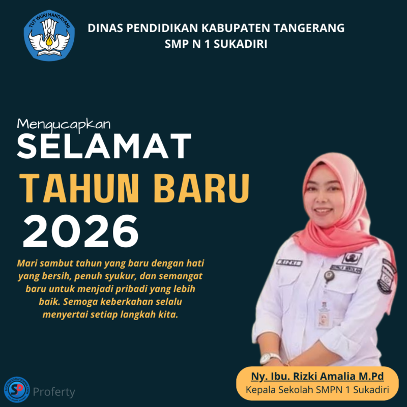 Suarapanturanews.com, Tangerang —Dalam rangka pergantian Tahun baru 2025 ke Tahun 2026 Dinas Pendidikan SMPN 1 Sukadiri Kabupaten Tangerang, mengucapkan selamat Tahun Baru.