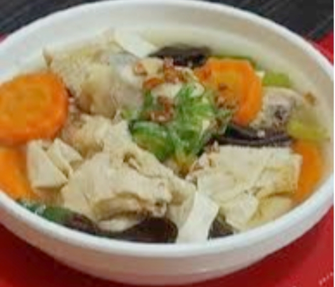 Kaldu ayam hangat meningkatkan sirkulasi darah, sementara kembang tahu dan sayuran menambah protein dan serat. Sup ini mudah dicerna dan menyehatkan seluruh keluarga.