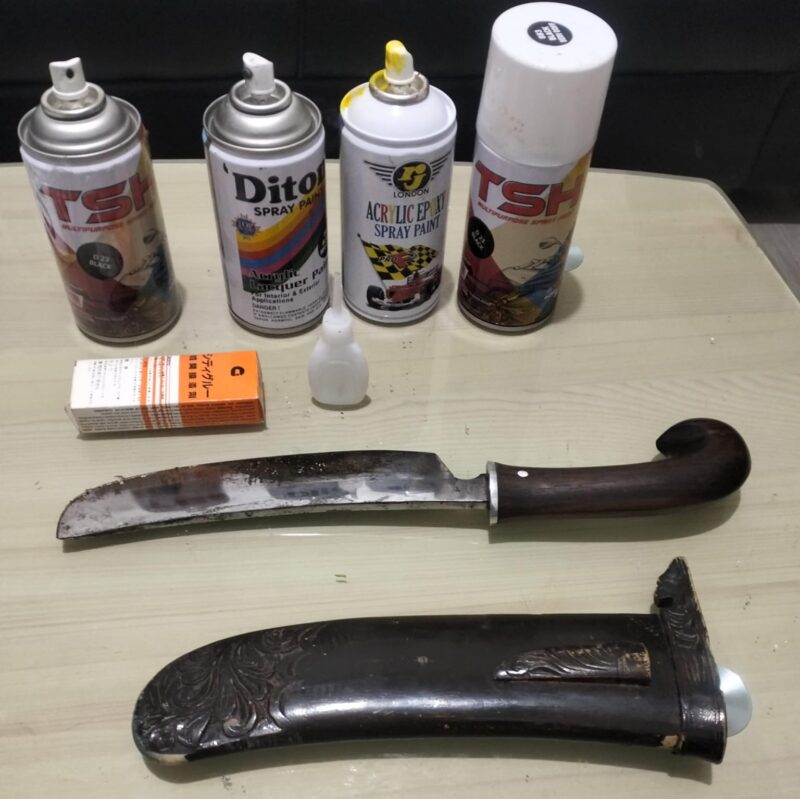 Dalam penangkapan tersebut, Unit Reskrim Polsek Benda mengamankan barang bukti berupa satu unit Mitsubishi Colt Diesel tahun 2007, sebilah golok yang digunakan saat beraksi, pelat nomor asli dan palsu, enam kaleng pilox, serta lem perekat pelat nomor.