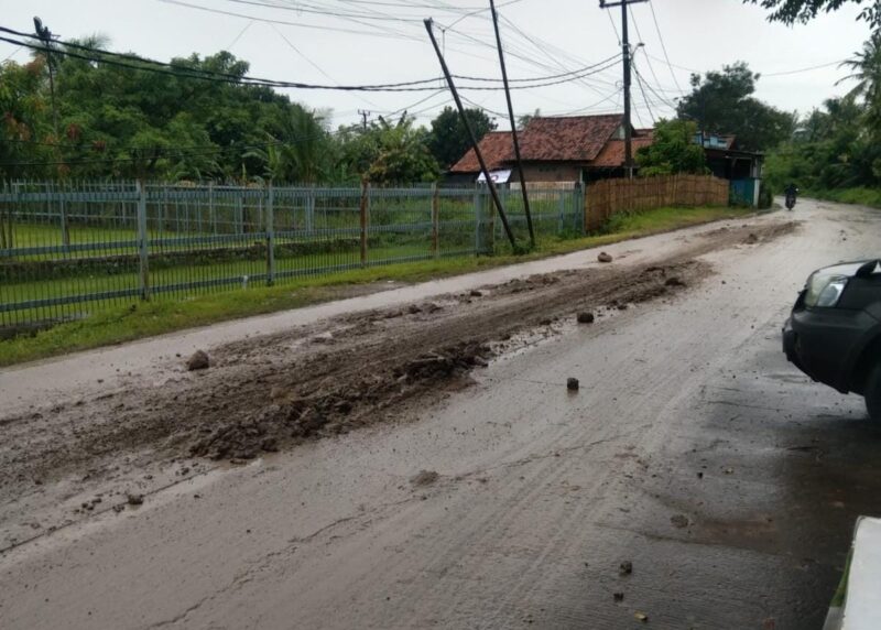 setidaknya harus dibersihkan lah jangan dibiarkan seperti itu, kasihan semua para pengguna jalan ini, apalagi ini Jalan menuju ke kantor kecamatan dan Anak anak hendak bersekolah.