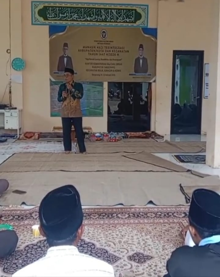 Suarapanturanews.com — Tangerang, Kantor Kementerian Haji dan Umrah Kabupaten Tangerang menyelenggarakan kegiatan Bimbingan Manasik Haji selama dua hari, Selasa–Rabu, 10–11 Februari 2026, dengan materi “Layanan dan Ibadah Selama di Arafah dan Muzdalifah.” Kegiatan ini dilaksanakan di Yayasan Pendidikan Islam Riyadhussolihin, Kampung Tuis, Desa Mekar Kondang, Kecamatan Sukadiri, Selasa (10/2/2026).